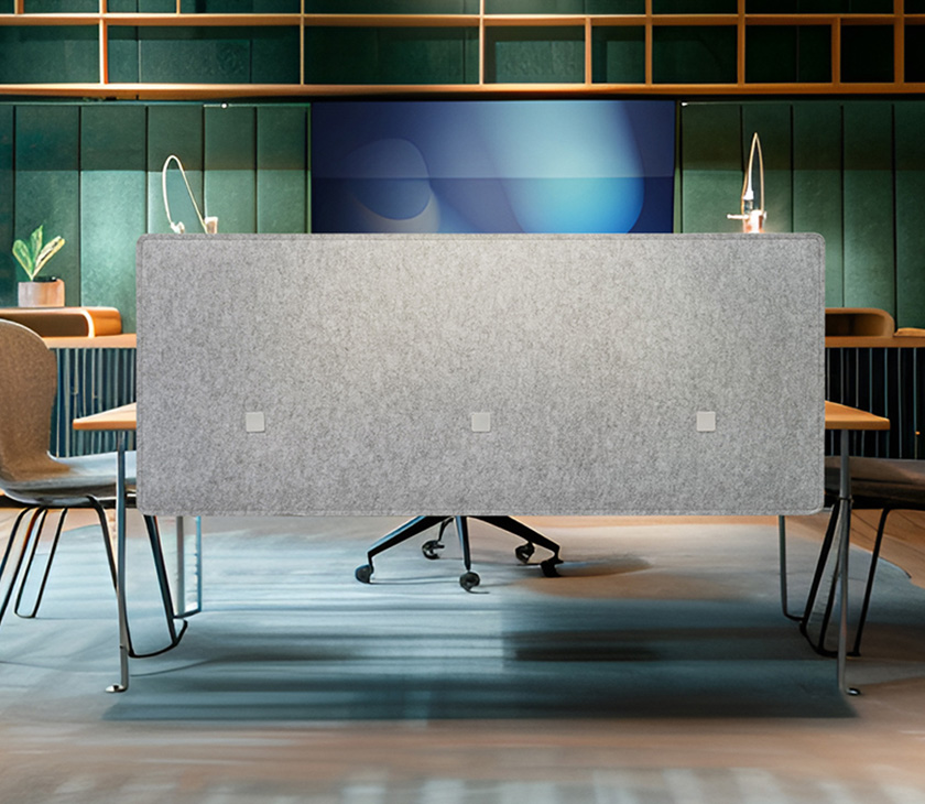 PET material is composed of 60% polyester fiber. It’s recyclable and has excellent sound absorption effect for open space partition.