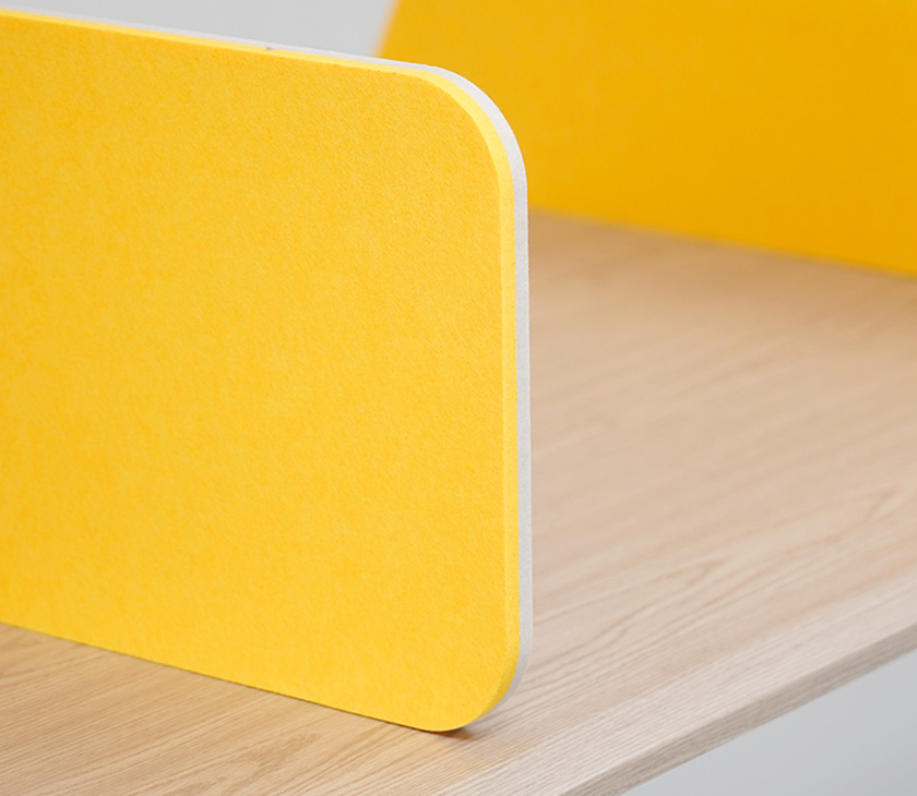 Composed of eco-friendly recyclable polyester fibers, the desk divider is lighter, with a wide range of colors and diverse styles compared to traditional wooden partitions, and supports customization and cutting into various shapes.