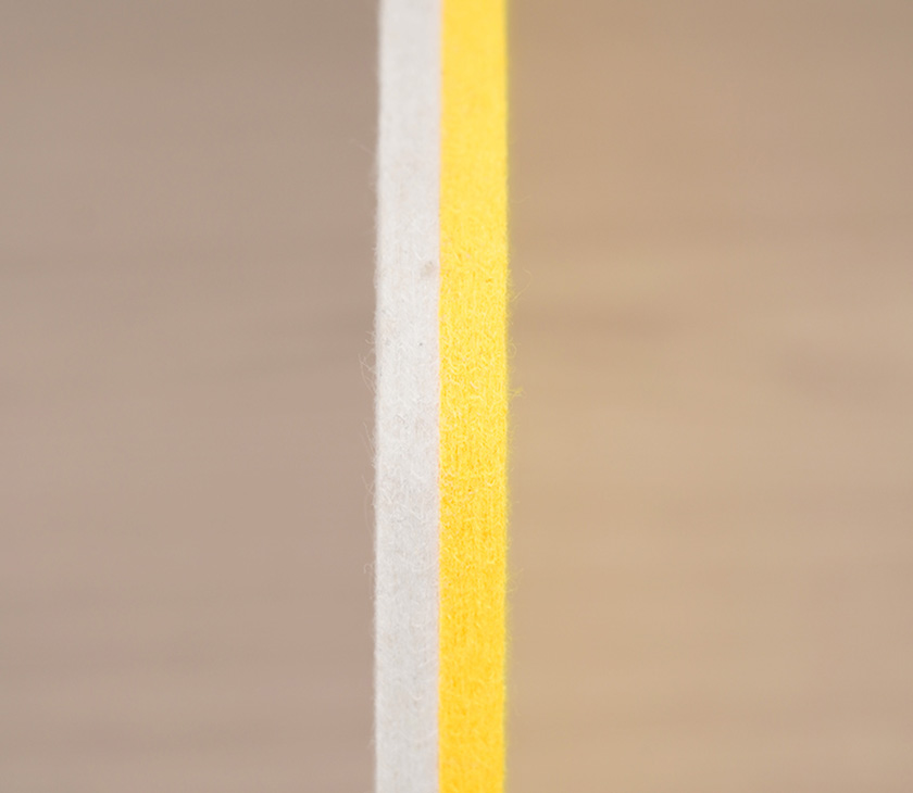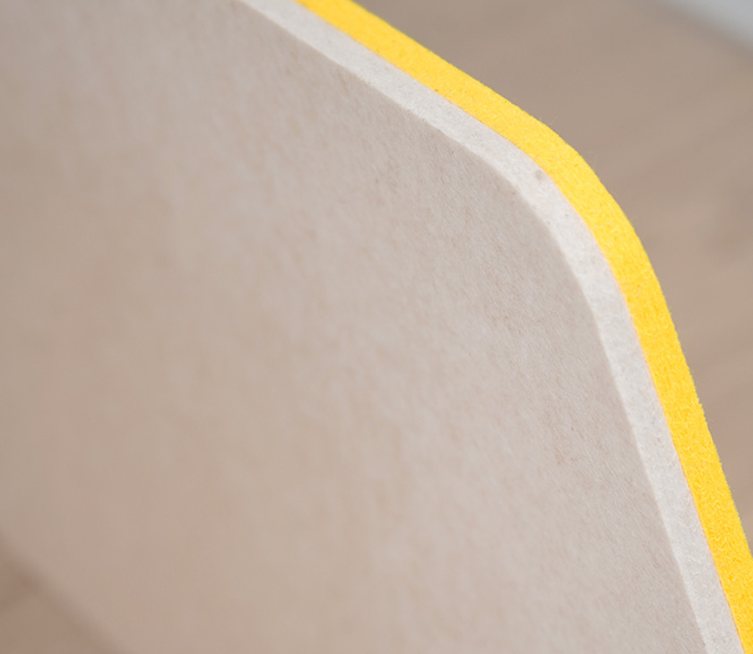 PET material is composed of 60% polyester fiber. It’s recyclable and has excellent sound absorption effect for open space partition.