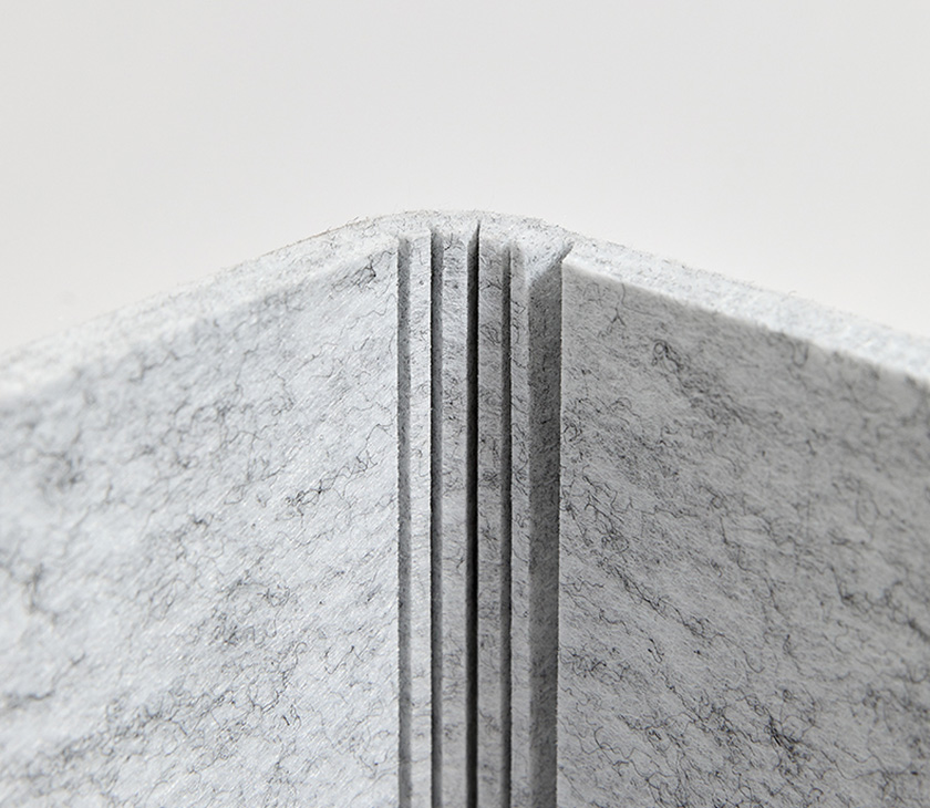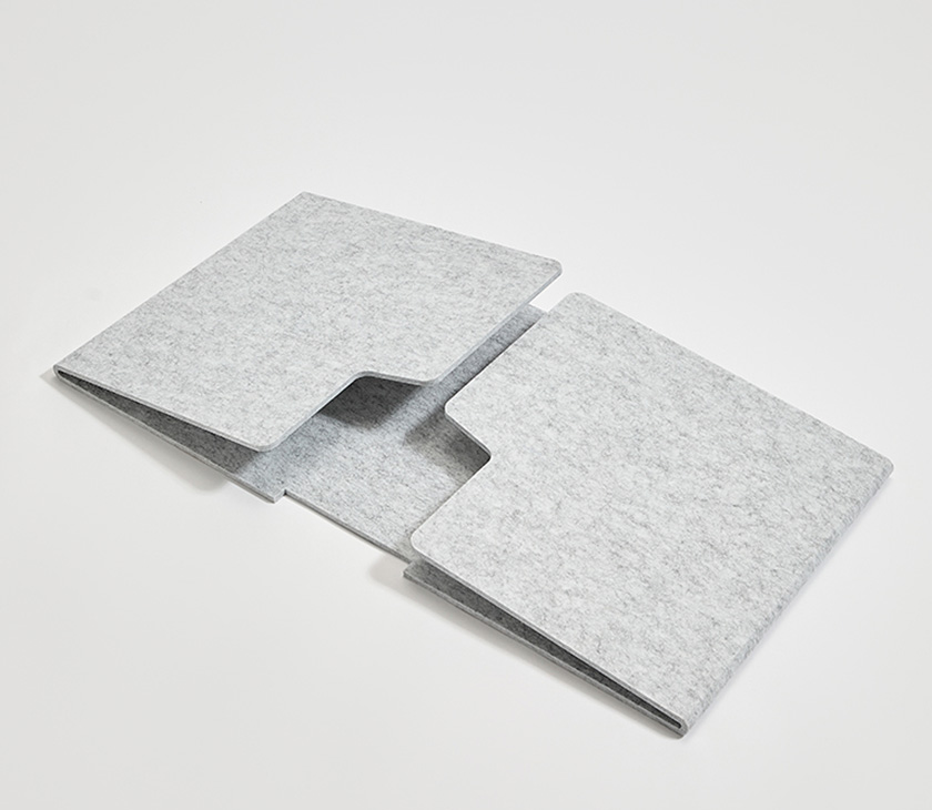 PET material is composed of 60% polyester fiber. It’s recyclable and has excellent sound absorption effect for open space partition.