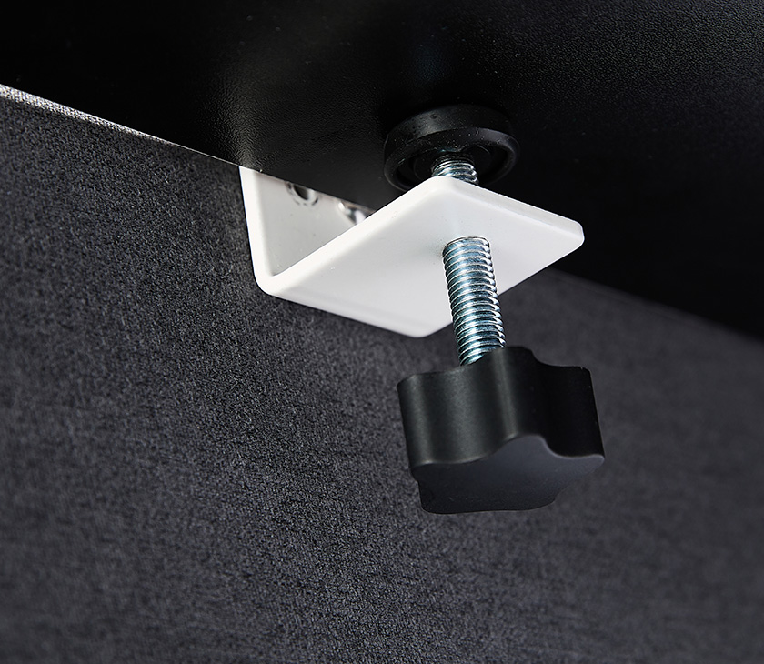 The surface fabric allows for inserting pins (enabling the attachment of sticky notes, memos or decorations). Additionally, it comes with adjustable clamp accessories available in multiple options, making installation more flexible.