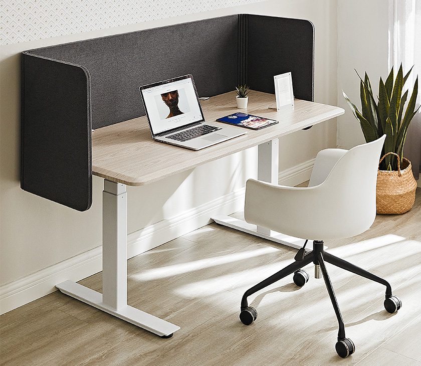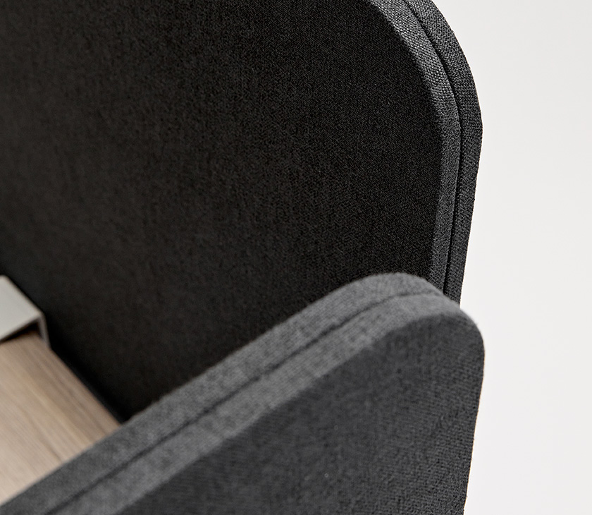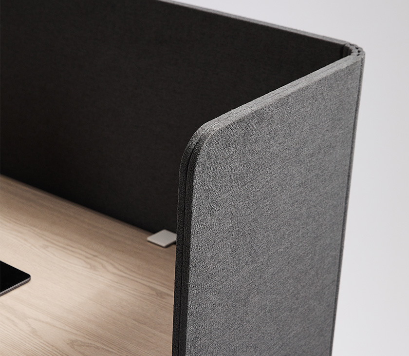 The U-shaped divider is crafted with acoustic PET material wrapped in durable fabric, effectively minimizing noise distractions and creating a quieter, more focused work environment.