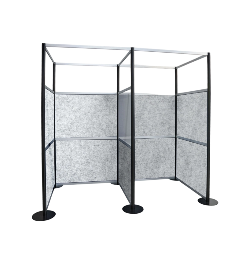 This modular workstation is primarily made of sound-absorbing polyester fiber, which is not only eco-friendly but also highly durable. The combination of acrylic material enhances its aesthetic appeal, giving it a sleek and modern look.