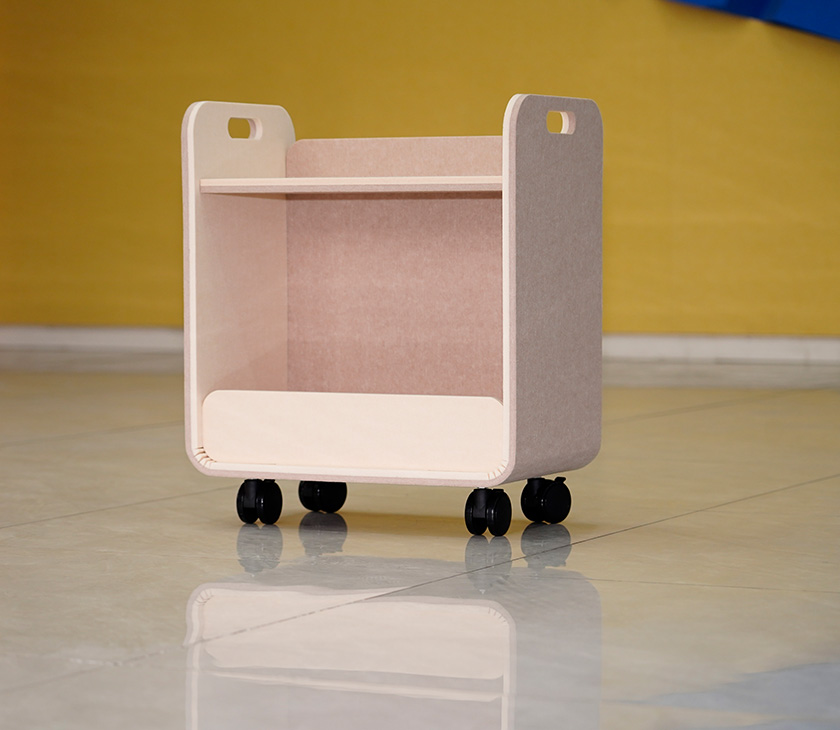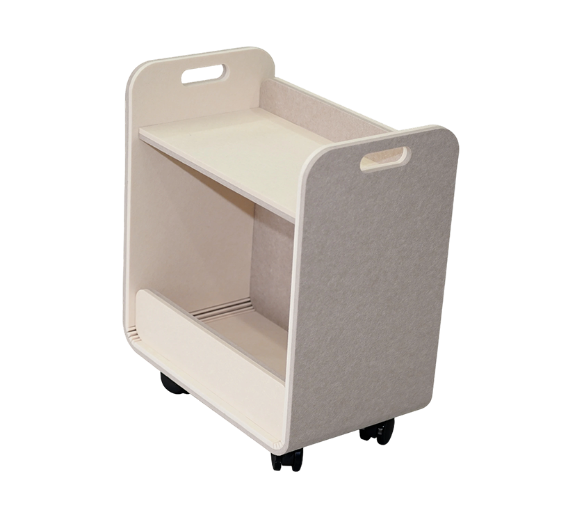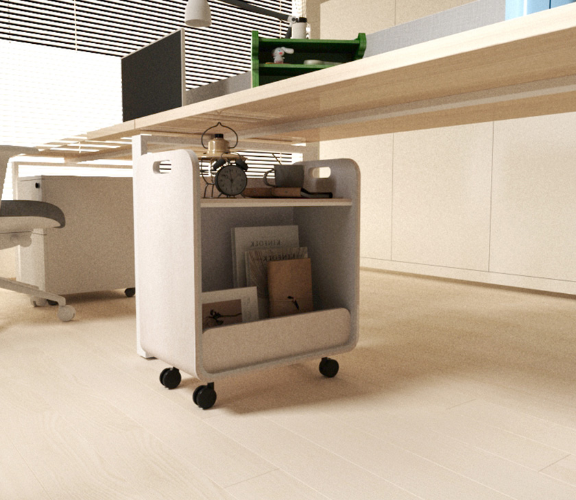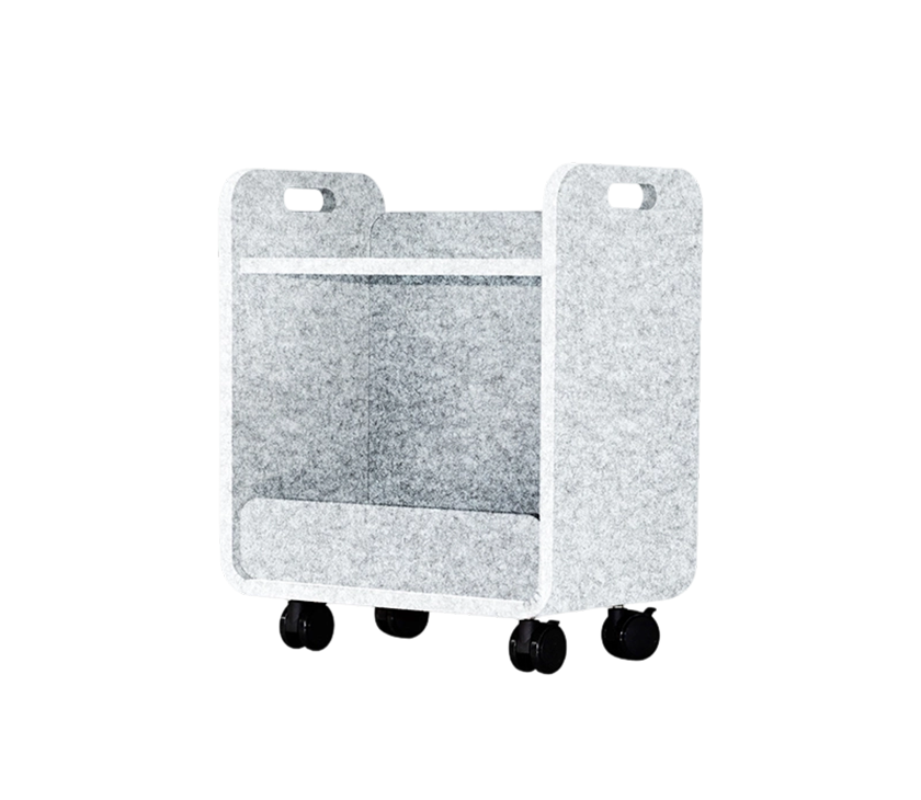 Our portable movable acoustic PET flexible storage cart is crafted from durable and absorbent polyester fiber (PET), it ensures longevity and resilience. Its functional design offers flexible storage options for organizing various items, while the inclusion of braked wheels allows for effortless mobility and stable positioning.