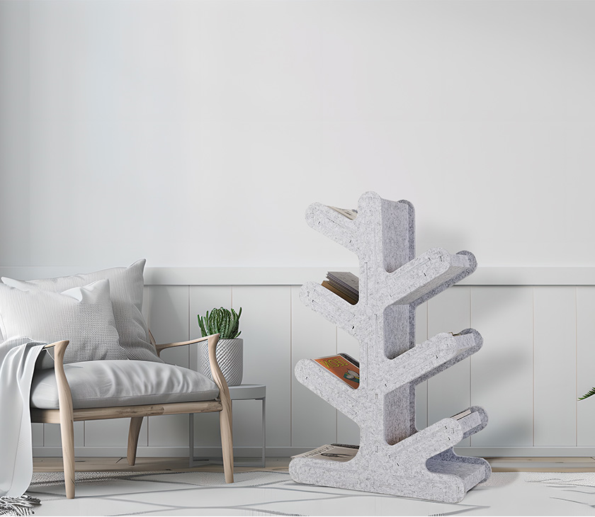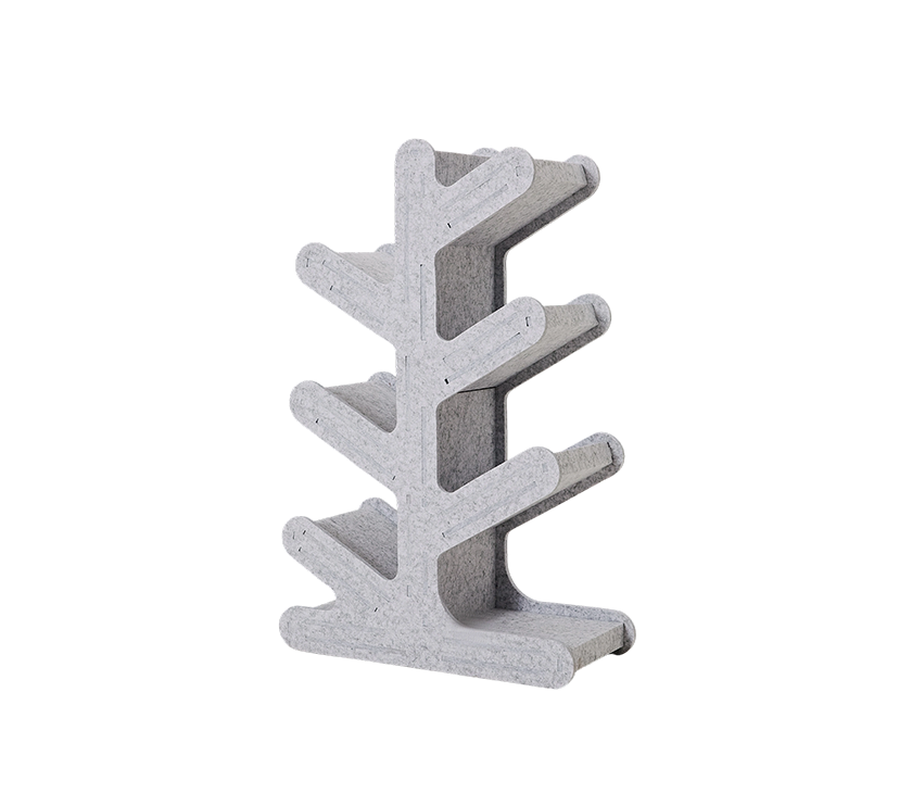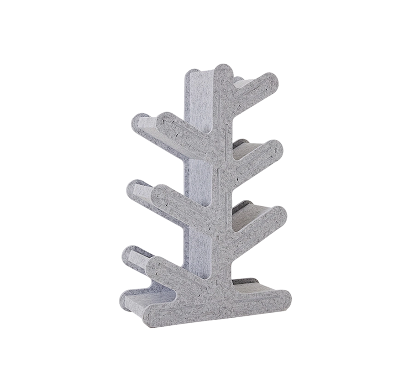 The creative acoustic PET tree-shaped bookshelf shelf is a remarkable fusion of functionality and artistic design. Crafted from durable and absorbent polyester fiber, it ensures both longevity and practicality. This shelf stands out with its stylish tree-inspired silhouette, offering a refreshing alternative to traditional shelving units while providing flexible storage space.
